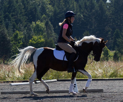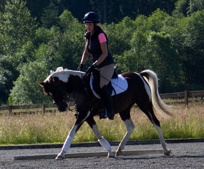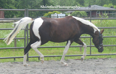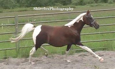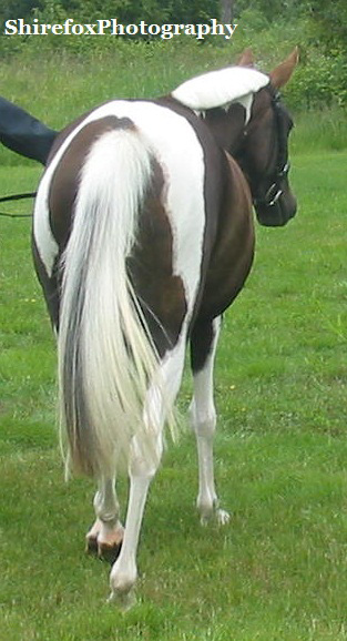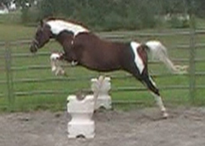 This young mare is exotic with stunning color and huge talent like her sire. Lovely temperament and can be competitive to the higher levels...talent for dressage jumping and the hunters! This girl will be hard to miss at the shows...can be registered AWS National Showhorse 1/2 Arabian and Pinto Go any way you want to show this multi talented mare.